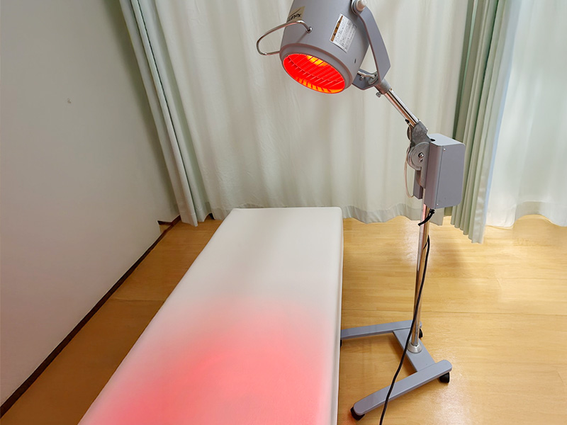 また、赤外線は鍼を刺した状態(置鍼中)で照射することで、鍼による経絡・ツボへの刺激と、赤外線による温熱刺激の相乗効果で、さらなる治療効果の向上が期待できます。